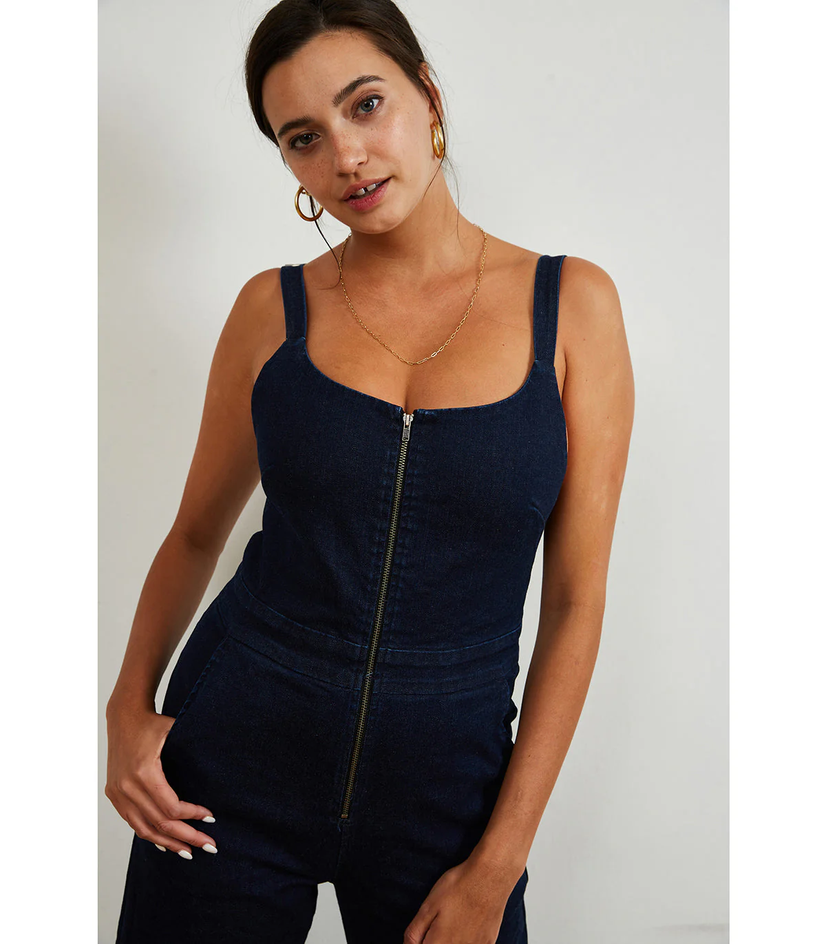 Billy Zip Front Wide Leg Jumpsuit - Dark Indigo