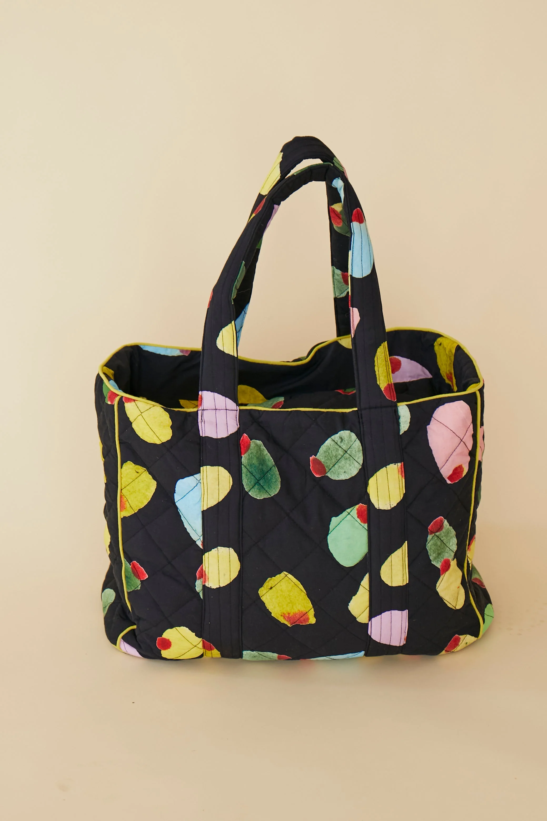 A flavorful pocket that compliments the main event-- is a tote not a bit like a cocktail olive? Commit to the metaphor, with Lydia! Our 100% poplin cotton tote sports ever-so-slightly-puffy quilting and an all-over Filthy Martini print, for those who enjoy parties and practicality in equal measure.
