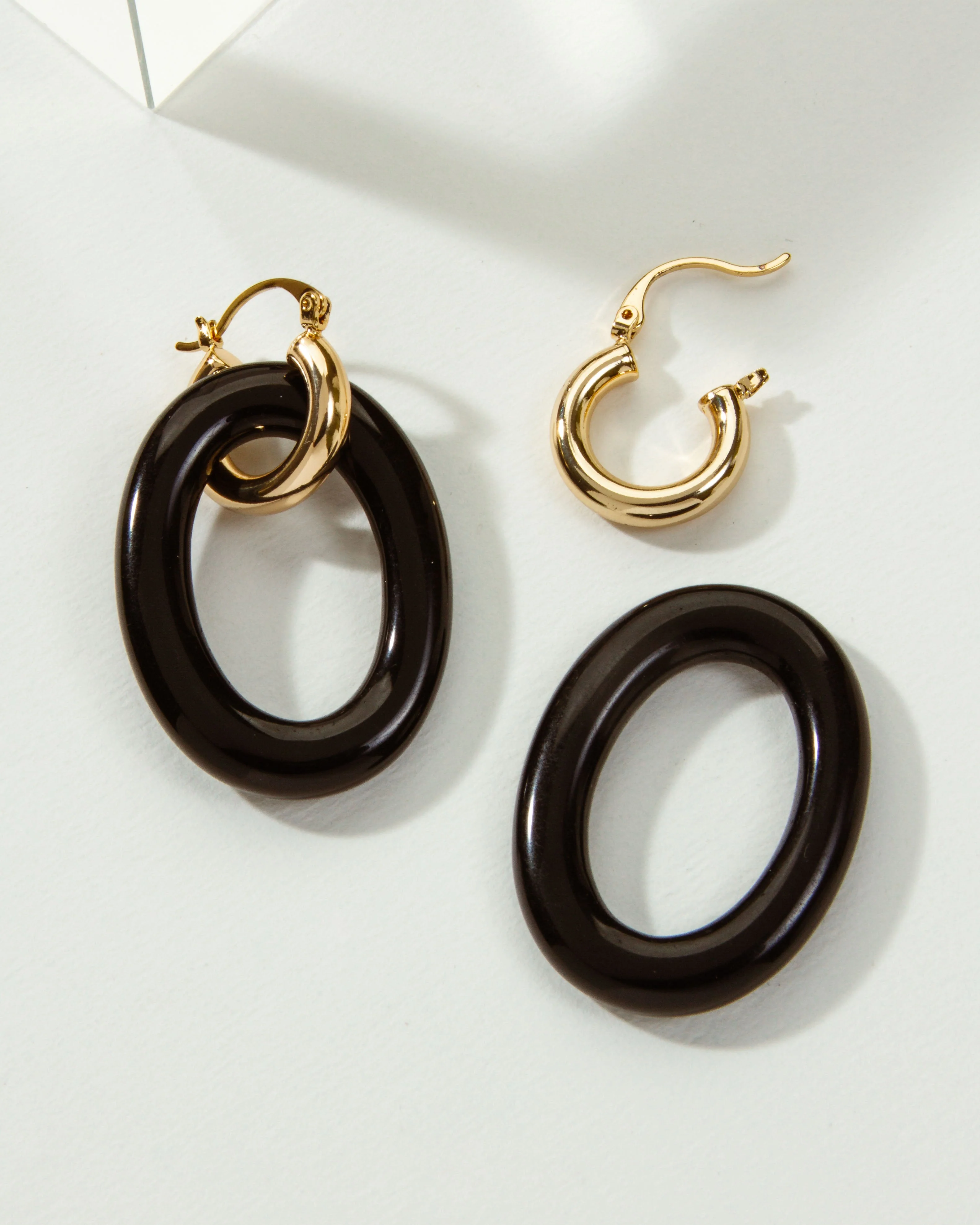 These finely polished hoops are just the right size for everyday wearー but aren't afraid of going the extra mile to give your look some flashy flair! Adding these bold gemstone charms will add a pop of color, perfect for when you want to steal the spotlight. Your new secret weapon to upgrade any outfit from basic to statement-worthy.